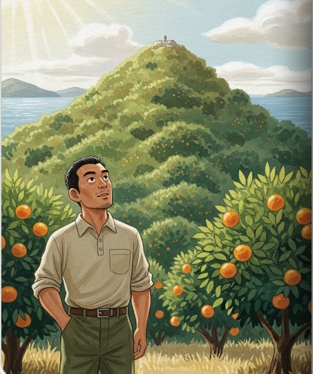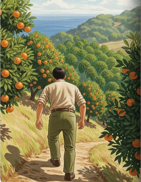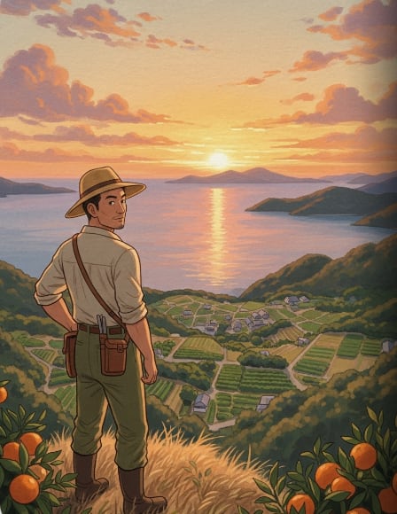 昔、洋一は東京の大学で法律を学んでいた。高いビルに囲まれた都会の真ん中で、彼はいつも瀬戸内の青い海と、太陽の光を浴びたみかん山のことを考えていた