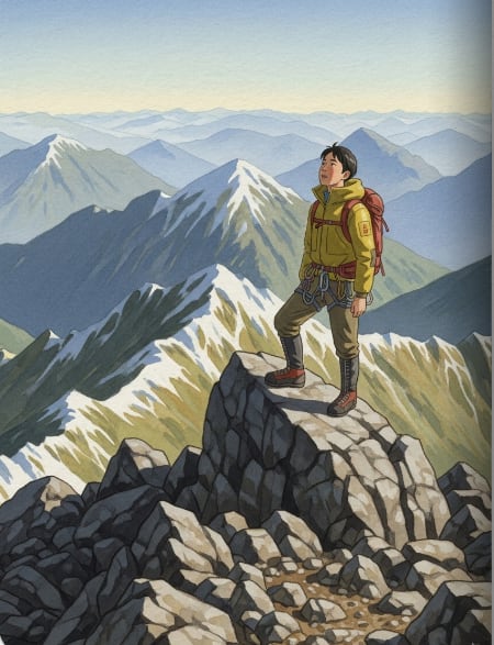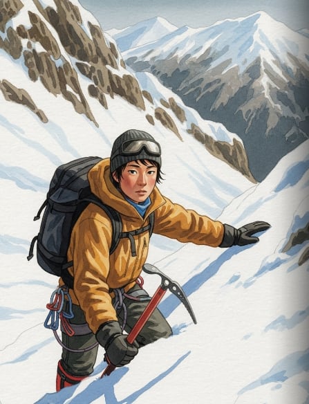 夏の緑豊かな沢登りから、冬の厳しい雪山まで。洋一はあらゆる登山技術を学び、仲間と共に数々の冒険を乗り越えた。